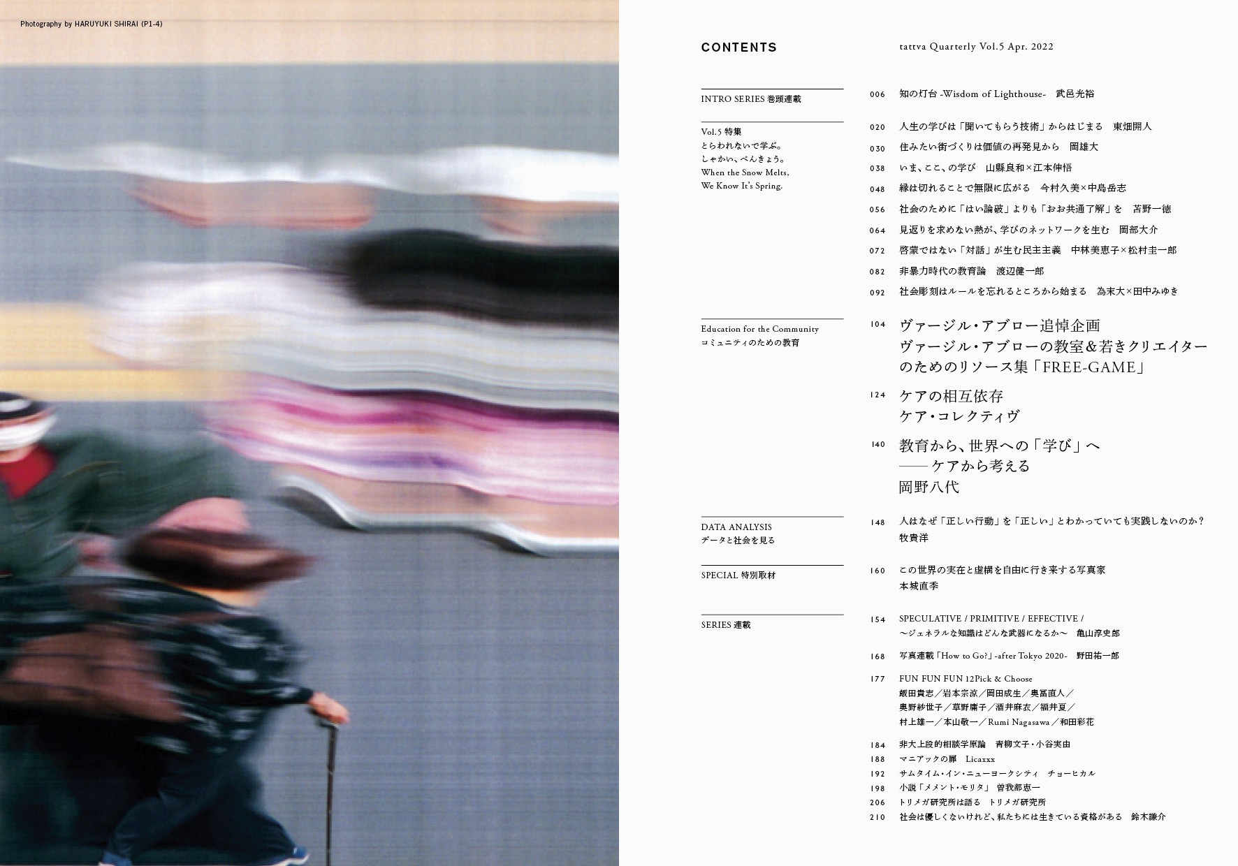 武邑光裕 / 東畑開人 / 山縣良和×江本伸悟 / 今村久美×中島岳志 / 苫野一徳 / 中林美恵子×松村圭一郎 / 渡辺健一郎 / 為末大×田中みゆき / 本城直季 / 野田祐一郎 / 草野庸子 / 奥野紗世子 / 酒井麻衣 / 和田彩花 / 曽我部恵一 / 青柳文子×小谷実由 / チョーヒカル / Licaxxx / 鈴木謙介 他多数